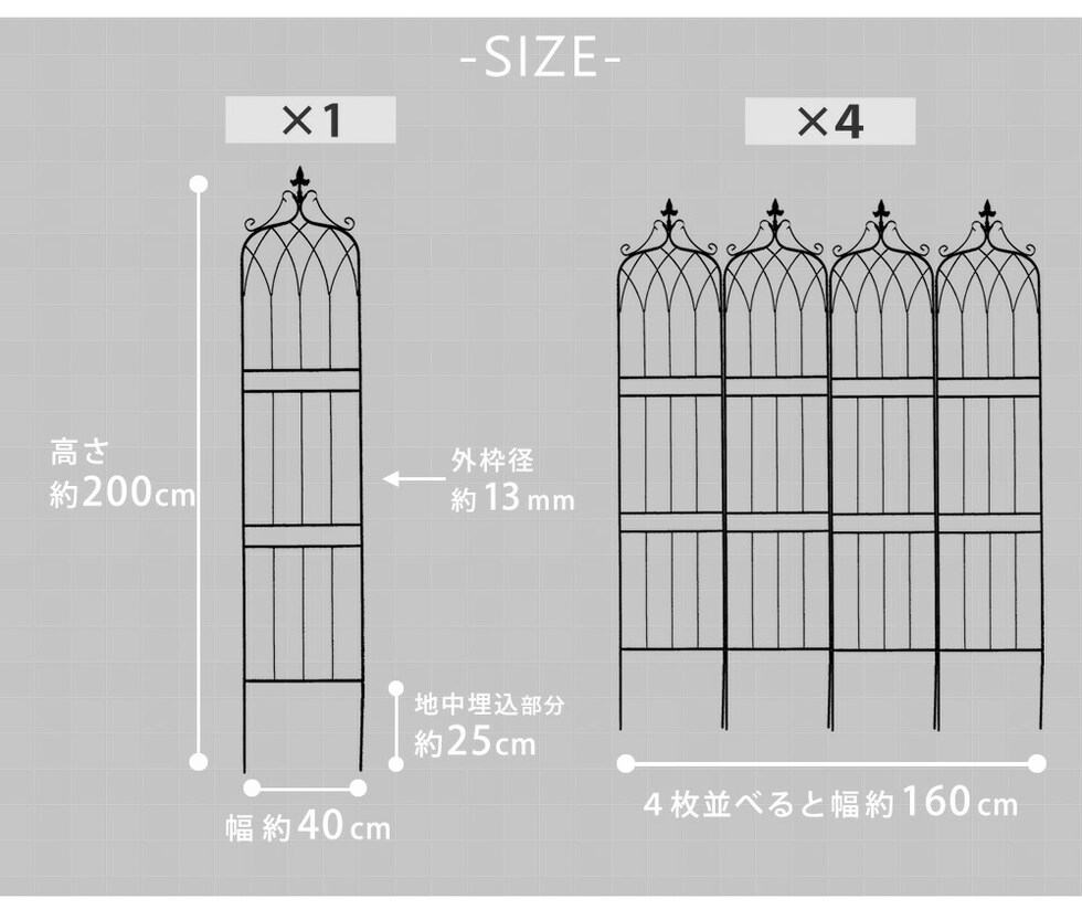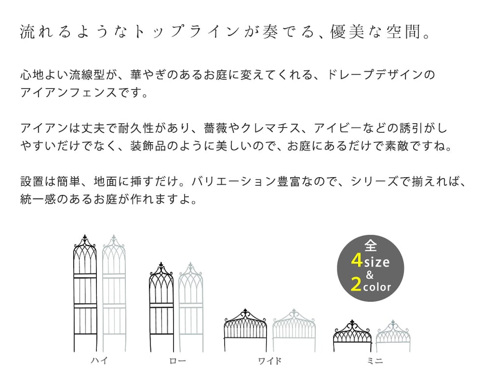 | ■商品名 | アイアンフェンス200 ハイタイプ "drape"(ドレープ) 4枚組 |