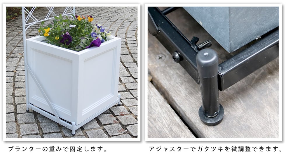 フェンスを組み立てたら、プランターを乗せるだけで設置完了。