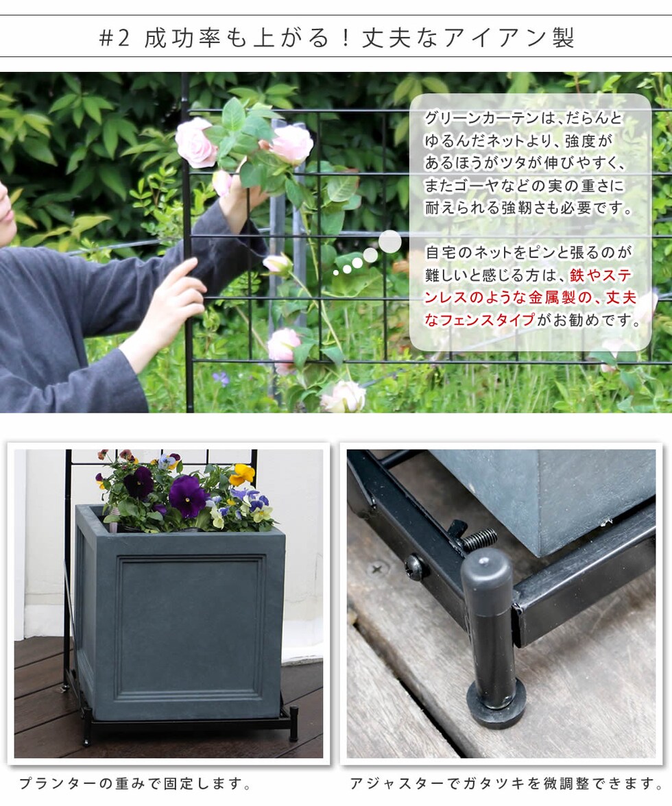 住まいスタイル プランター台付フェンス(ハイタイプ)「グラフ」<br>【送料無料 フェンス ゲート 扉 アイアン ガーデンフェンス ガーデニング 枠 柵 仕切り 目隠し 格子 ベランダ つる 薔薇 バラ 朝顔 園芸 ラティス つるバラ 庭 屋外 】