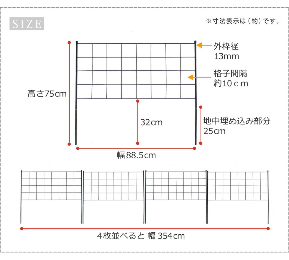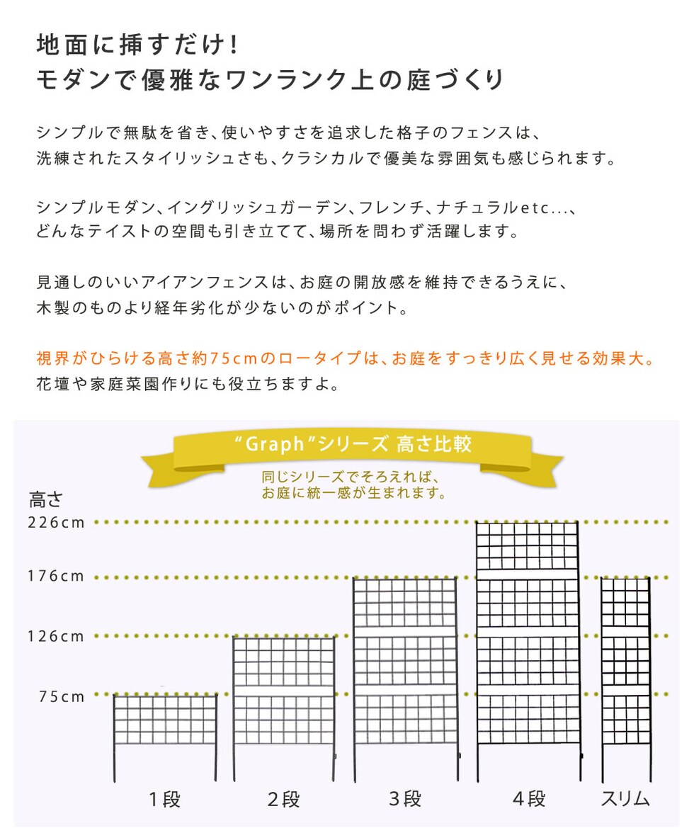住まいスタイル アイアンフェンス 高さ75「グラフ」4枚組【送料無料 フェンス アイアン ガーデンフェンス ガーデニング 枠 柵 仕切り 目隠し 境目 クラシカル アンティーク 格子 ベランダ つる 薔薇 バラ 朝顔 園芸 ラティス つるバラ 庭誘引 屋外 】