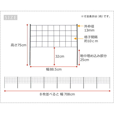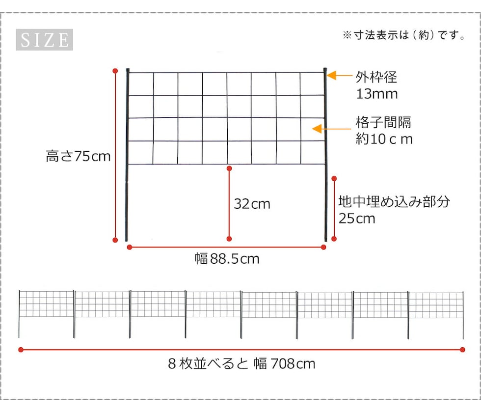住まいスタイル アイアンフェンス 高さ75「グラフ」8枚組【送料無料 フェンス アイアン ガーデンフェンス ガーデニング 枠 柵 仕切り 目隠し 境目 クラシカル アンティーク 格子 ベランダ つる 薔薇 バラ 朝顔 園芸 ラティス つるバラ 庭誘引 屋外 】