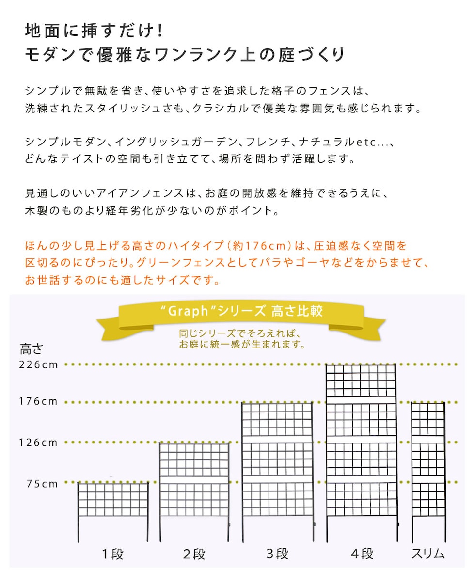 住まいスタイル アイアンフェンス 高さ176 「グラフ」 1枚【送料無料 フェンス アイアン ガーデンフェンス ガーデニング 枠 柵 仕切り 目隠し 境目 クラシカル アンティーク 格子 ベランダ つる 薔薇 バラ 朝顔 園芸 ラティス つるバラ 庭誘引 屋外 】