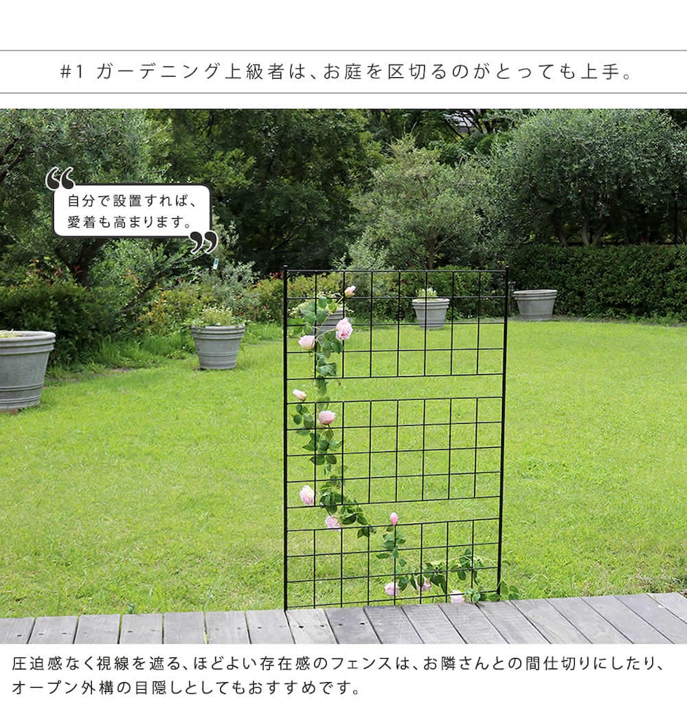 区切るのにぴったり。グリーンフェンスとしてバラやゴーヤなどをからませて、