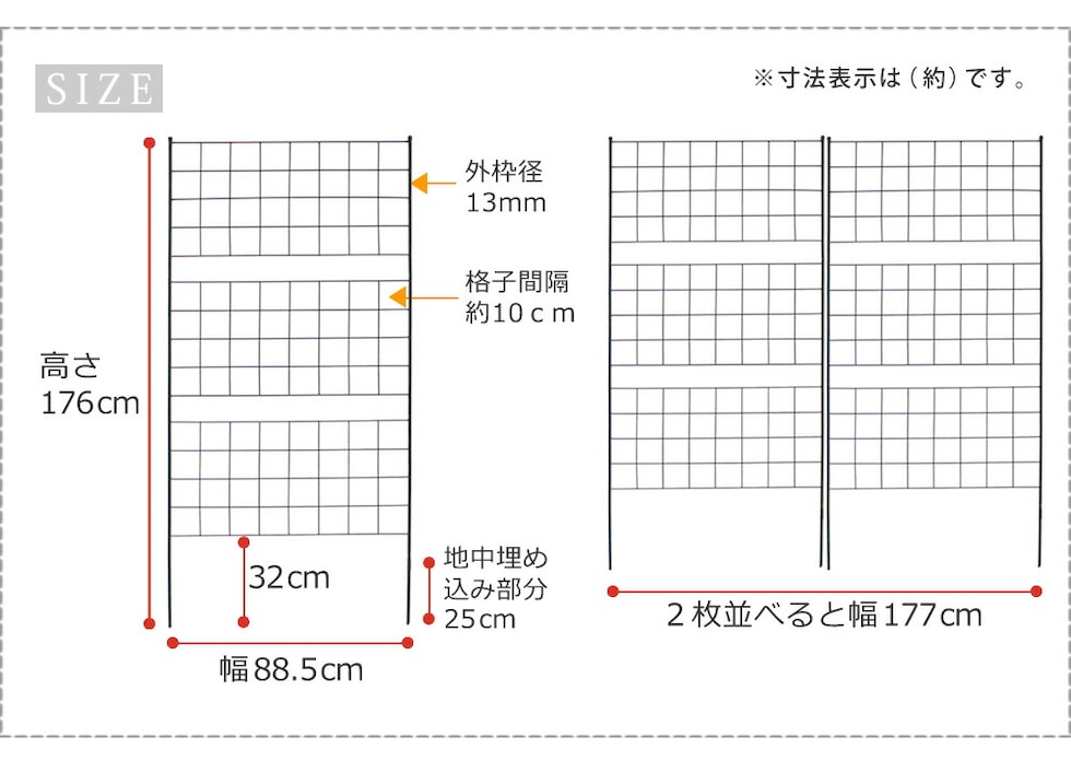 住まいスタイル アイアンフェンス 高さ176 「グラフ」 2枚組【送料無料 フェンス アイアン ガーデンフェンス ガーデニング 枠 柵 仕切り 目隠し 境目 クラシカル アンティーク 格子 ベランダ つる 薔薇 バラ 朝顔 園芸 ラティス つるバラ 庭誘引 屋外 】