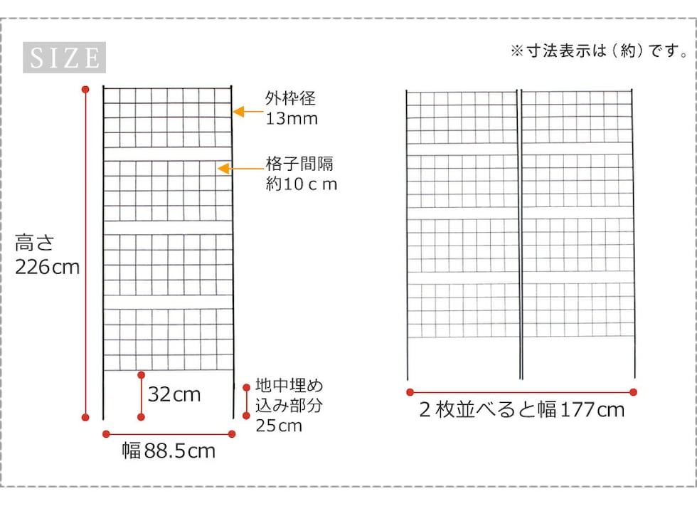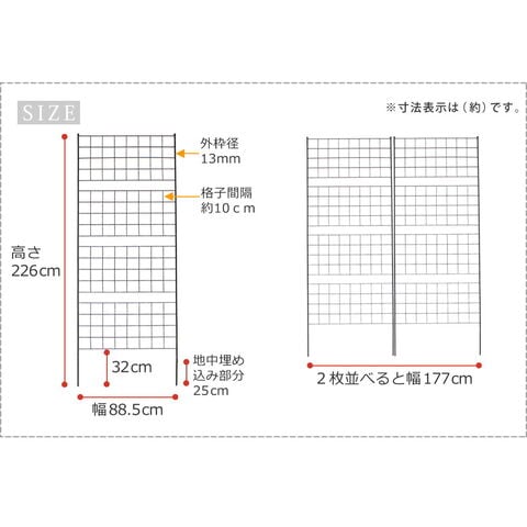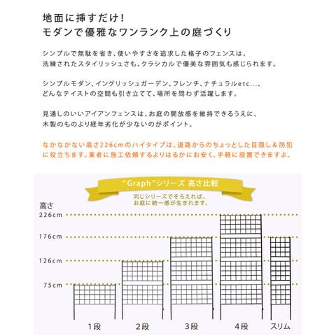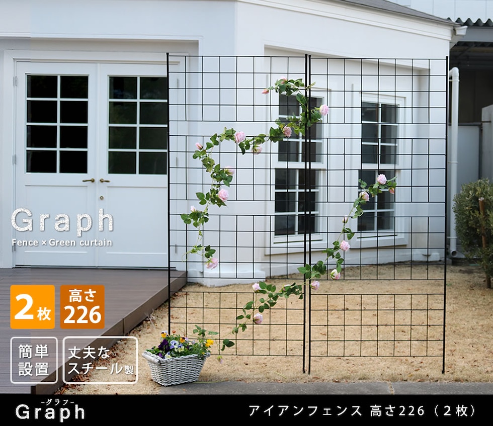 住まいスタイル アイアンフェンス 高さ226 「グラフ」 2枚組【送料無料 フェンス アイアン ガーデンフェンス ガーデニング 枠 柵 仕切り 目隠し 境目 クラシカル アンティーク 格子 ベランダ つる 薔薇 バラ 朝顔 園芸 ラティス つるバラ 庭誘引 屋外 】