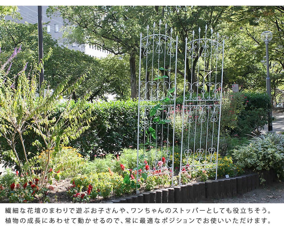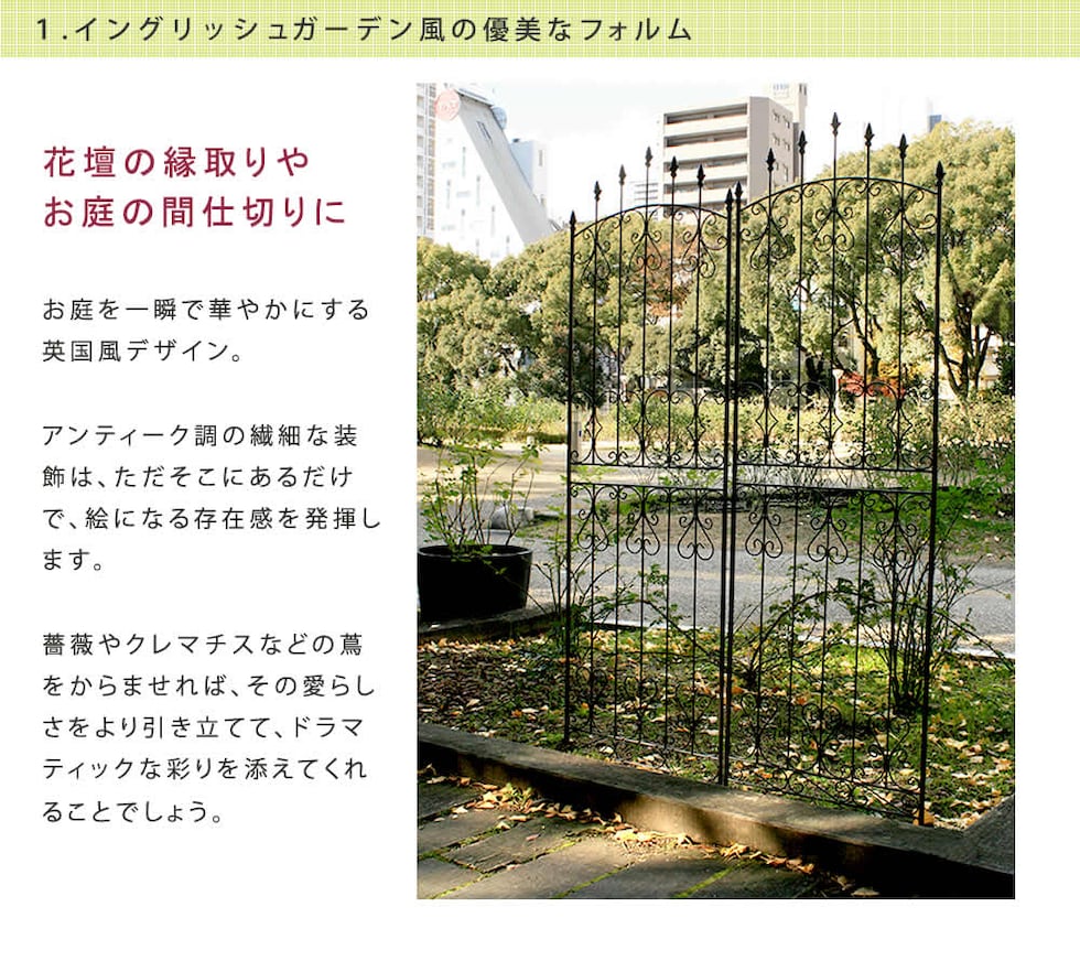 壁に立てかけるだけで瀟洒(しょうしゃ)な存在感があり、蔦をからませればまるで、ロマンチックな古城の庭!