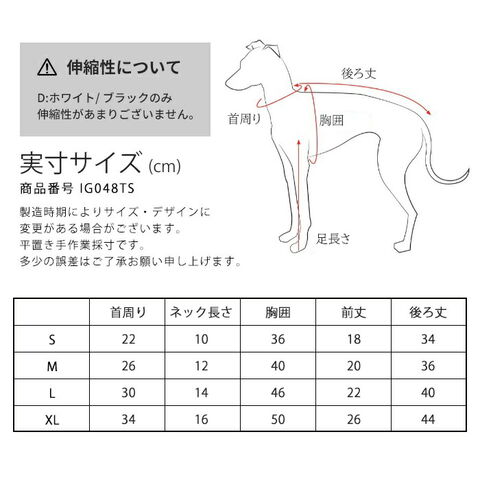 XL:首周34/ネック長さ16/胸囲50/前丈26/後丈44