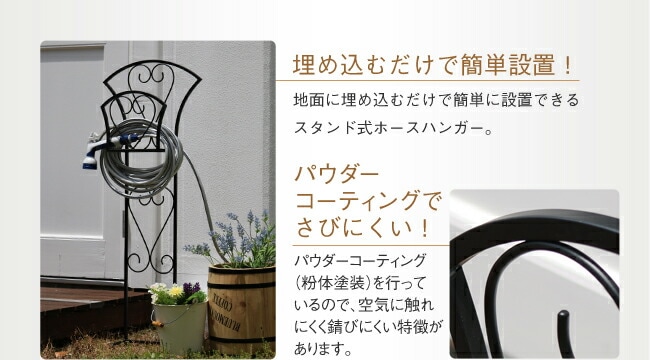 地面に埋め込むだけで簡単に設置できるスタンド式ホースハンガー。
