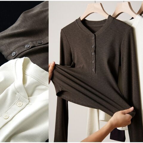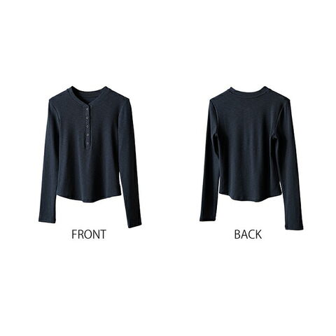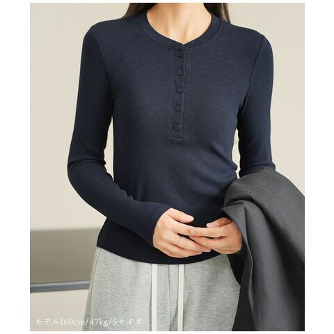 Tシャツ カットソー 長袖 ヘンリーネック レディース 綿混 リブ カジュアル ロンT 春 秋 冬 無地 重ね着 着回し 下着 骨格ストレート S~XXL トップス 可愛い 柔らかい シンプル 伸縮性 ストレッチ オフィス J-25254 スイモク【水沐良品】