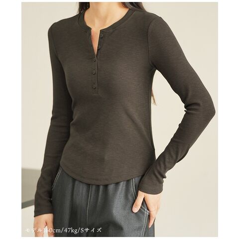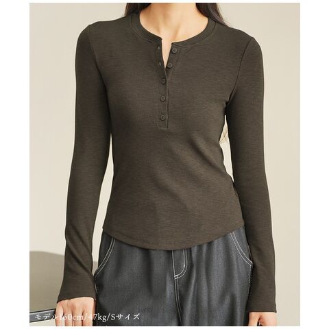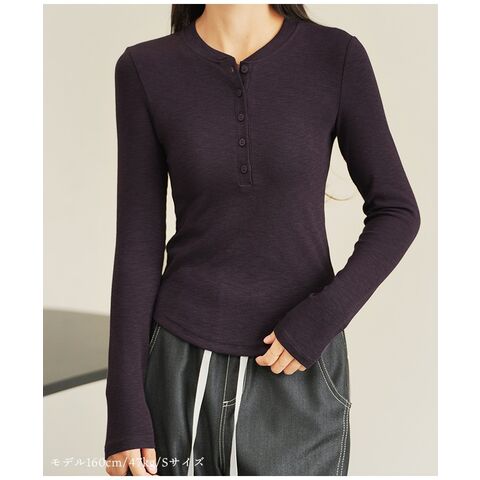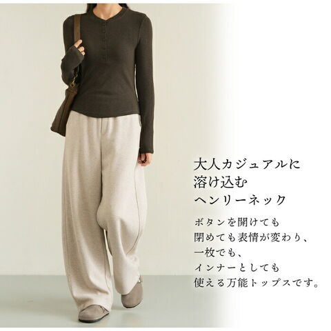 ヘンリーネックカットソー 長袖 ヘンリーネック レディース リブトップス 大人カジュアル トップス シンプル 無地 カットソー ベーシック 長袖Tシャツ 秋冬 重ね着インナー ナチュラル コーデ ストレッチ 伸縮性 着回し インナー デイリーウェア きれいめ 大人