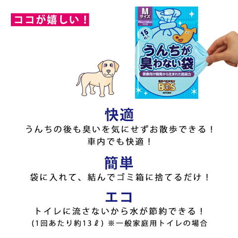 【Mサイズ 15枚】うんちが臭わない袋 BOS 防臭袋 犬用 ウンチ うんち袋 袋 防臭 臭わない 防臭素材 匂い 犬 いぬ イヌ 日本製 処分 匂い ペット用 旅行 散歩 お出かけ うんち マナー トイレ 水色(袋の色)