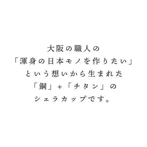 大阪の職人が渾身の日本モノを作りたいという想いから生まれた「銅」+「チタン」のシェラカップ。