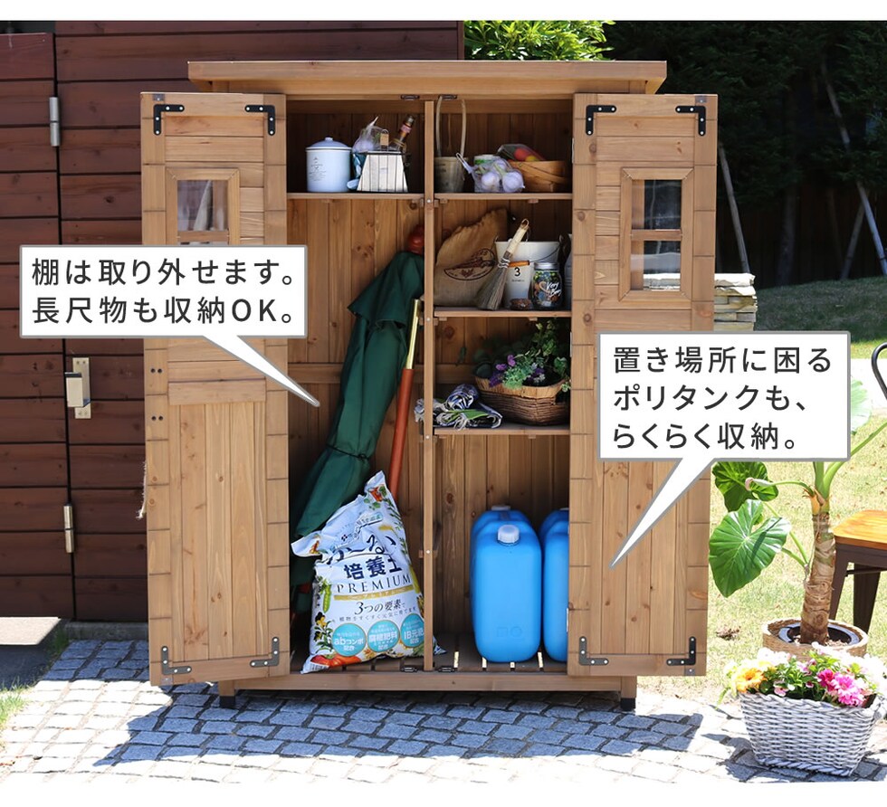 ホッ…とした気持ちになれる自然素材の収納庫は、スチール製より緑になじんでおしゃれ☆