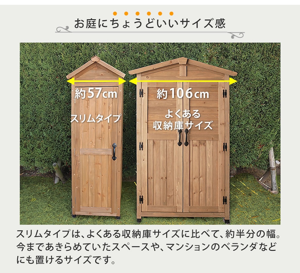 北欧の街並みを思わせる、三角屋根の天然木スリム収納庫です。