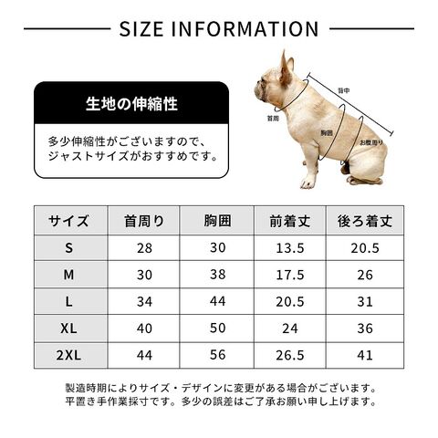 XL:首回り40cm 胸囲50cm 前丈24cm 後ろ丈36cm