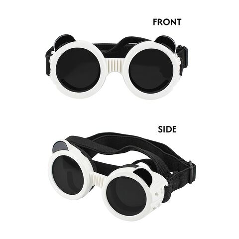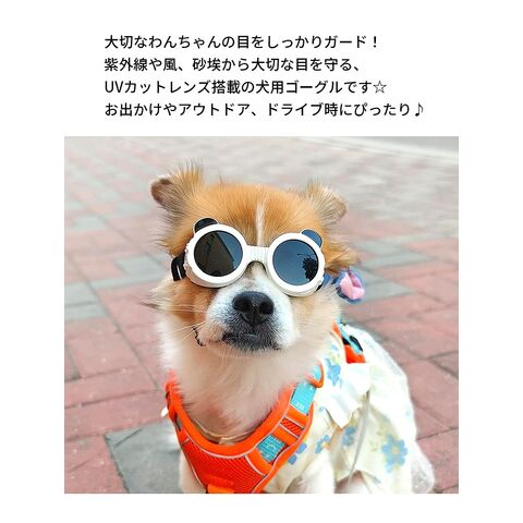 犬 サングラス ペット用 ゴーグル UVカット パンダゴーグル ドッグゴーグル ペットゴーグル 紫外線防止 防風 目の保護 フレンチブルドック 雪山 スキー 黒 ブラック ホワイト 白 おでかけ 小型犬 チワワ トイプードル マルチーズ KM817G