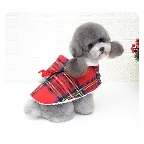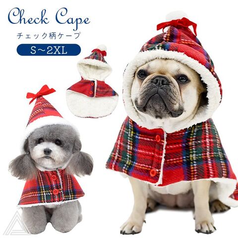 送料無料 犬服 チェック柄ケープ 裏ボア もこもこ ポンチョ フリース ボア ドッグウエア ペット いぬ 犬の服 小型犬 犬服 おしゃれ 寒さ対策 冬 暖かい かわいい トイプードル チワワ ダックス フレブル フレンチブルドッグ クリスマス 小型犬 中型犬 KM853T