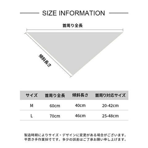 L:首回り全長70cm 傾斜長さ60cm 首周り適応サイズ25-48cm