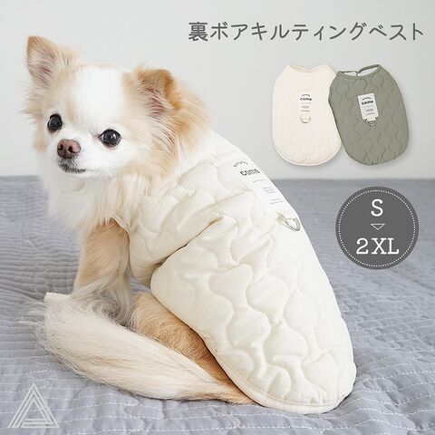 #犬 #服 #裏ボアキルティングベスト #あったかボア #コットン #クリーム #カーキ #超小型犬 #小型犬 #チワワ #トイプードル #パピヨン #マルチーズ #ポメラニアン #ダックスフンド #シーズー #秋冬 #防寒 #散歩 #お出掛け #KM893T