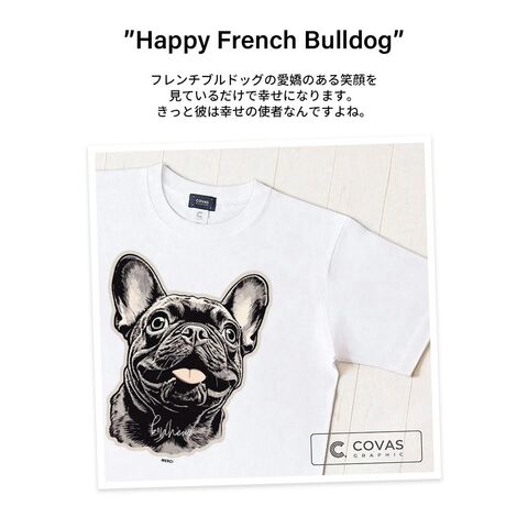 #COVAS GRAPHIC #Tシャツ #ハッピーフレンチブル #綿100% #コットン素材 #ホワイト #白 #349406-10 #ユニセックス #半袖 #綿100% #犬 #フレンチブルドッグ #フレブル #ブヒ #犬グッズ #プリントTシャツ #デザインTシャツ #グラフィックTシャツ #メンズ #レディース #男女兼用