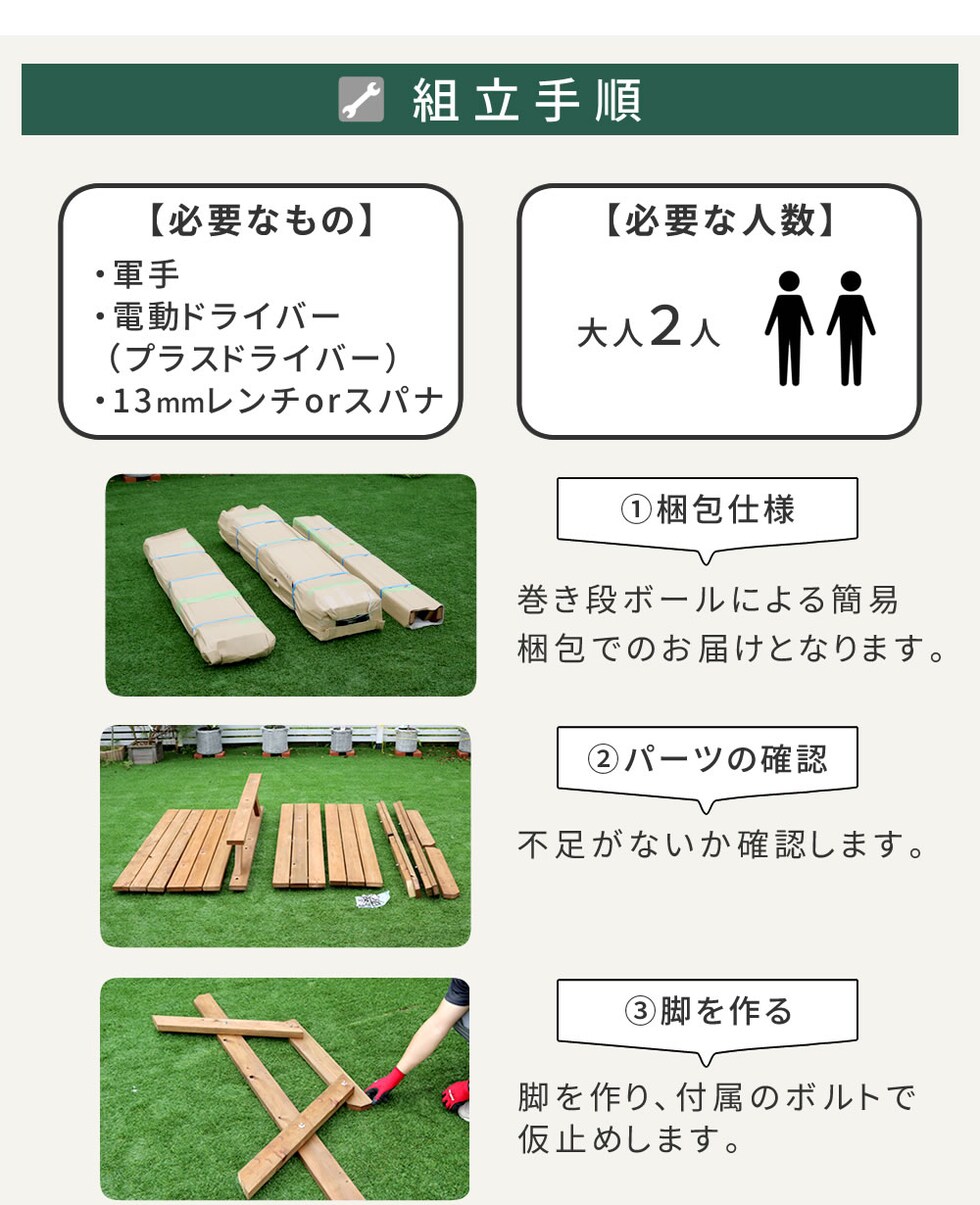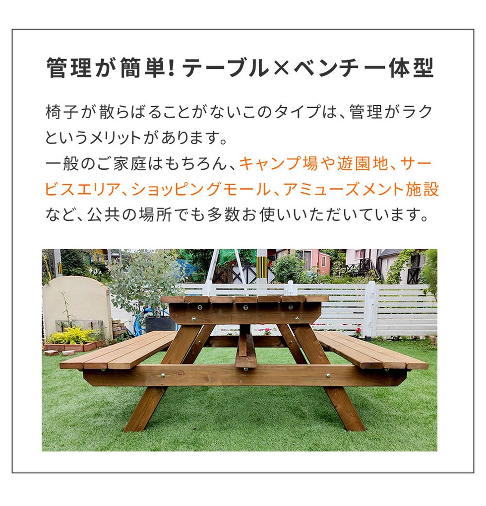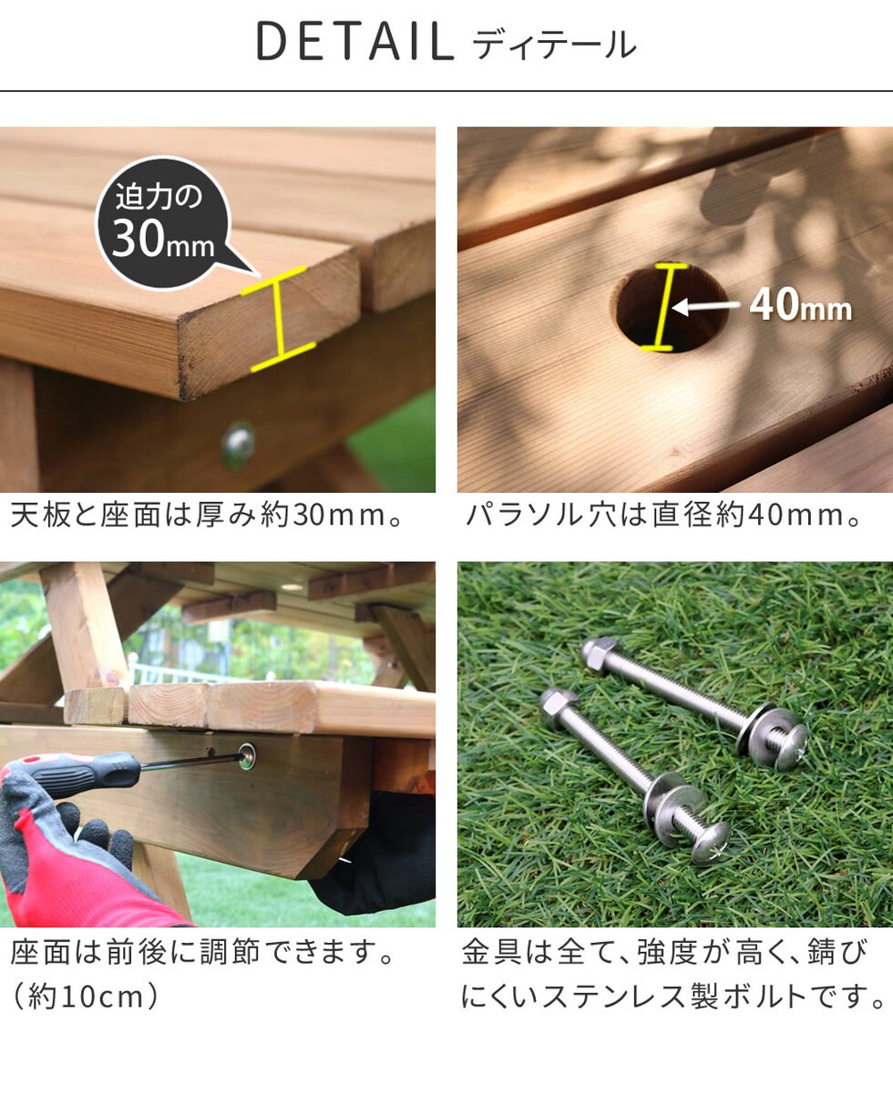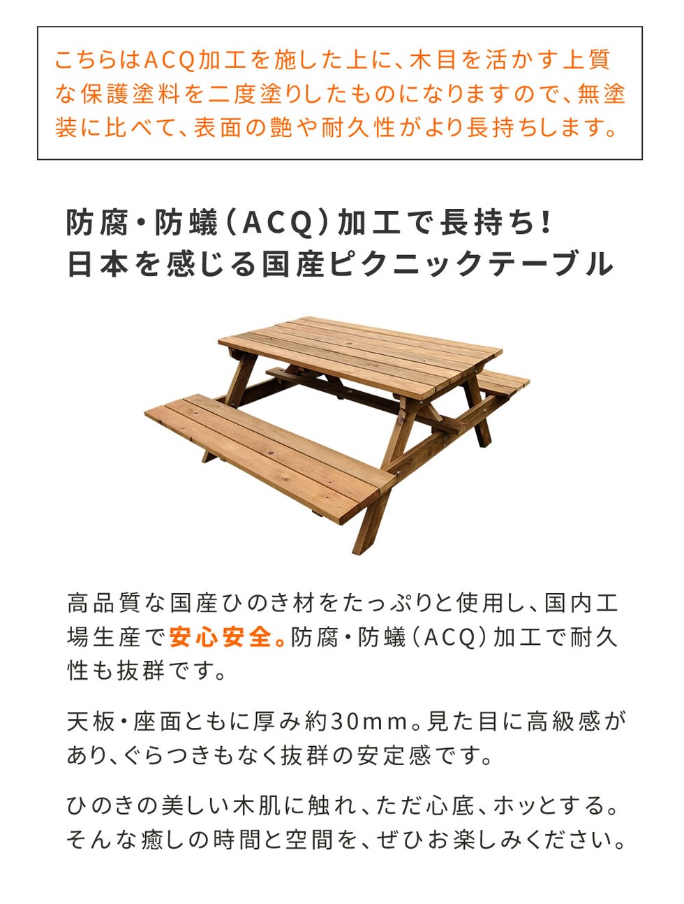●防腐・防蟻(ACQ)加工で長持ち!日本を感じる国産ピクニックテーブル