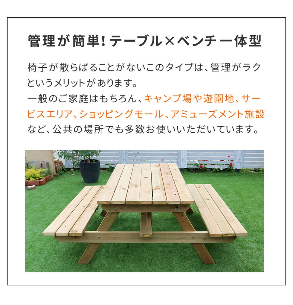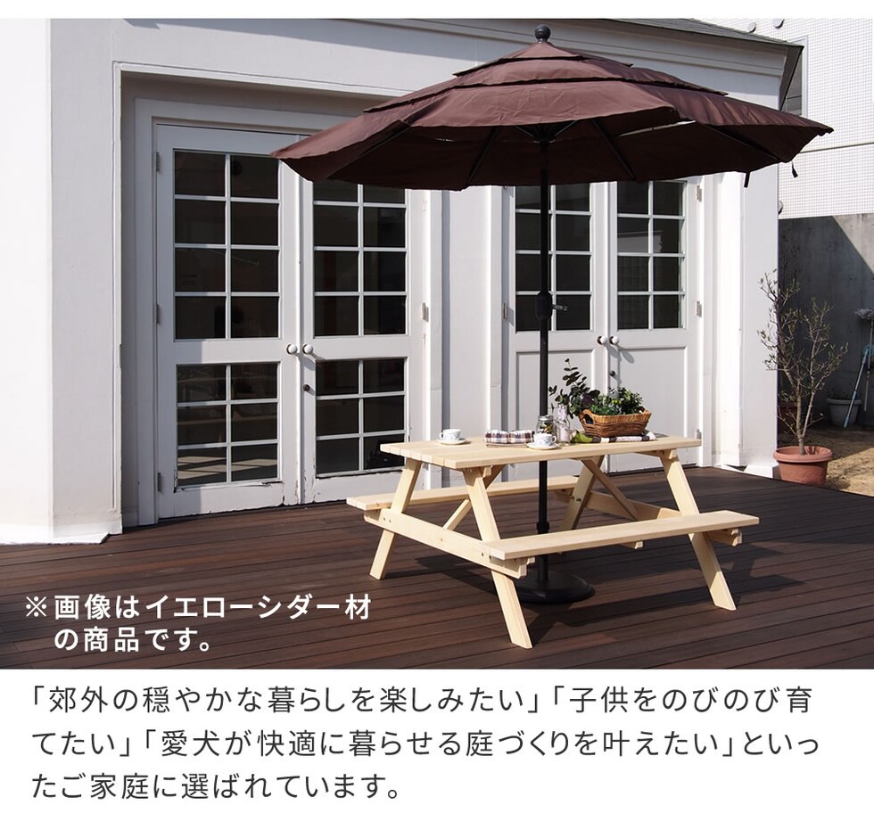 ●防腐・防蟻(ACQ)加工で長持ち!日本を感じる国産ピクニックテーブル