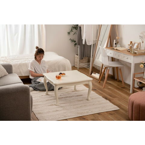 【検索キーワード】こたつ 石英管ヒーター テーブル 猫脚 おしゃれ ガーリー 白 ホワイト スイッチ シンプル オールシーズン 木製 天然木 やぐら 一人暮らし リビング ソファ 座椅子