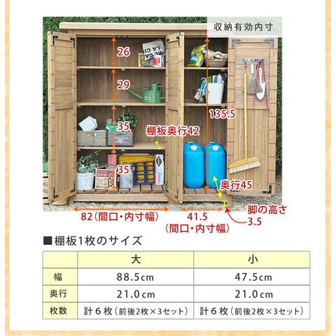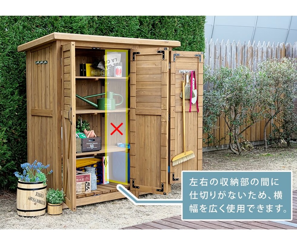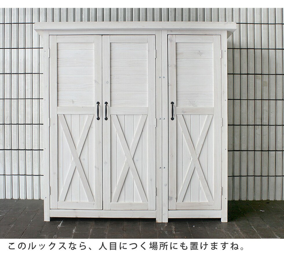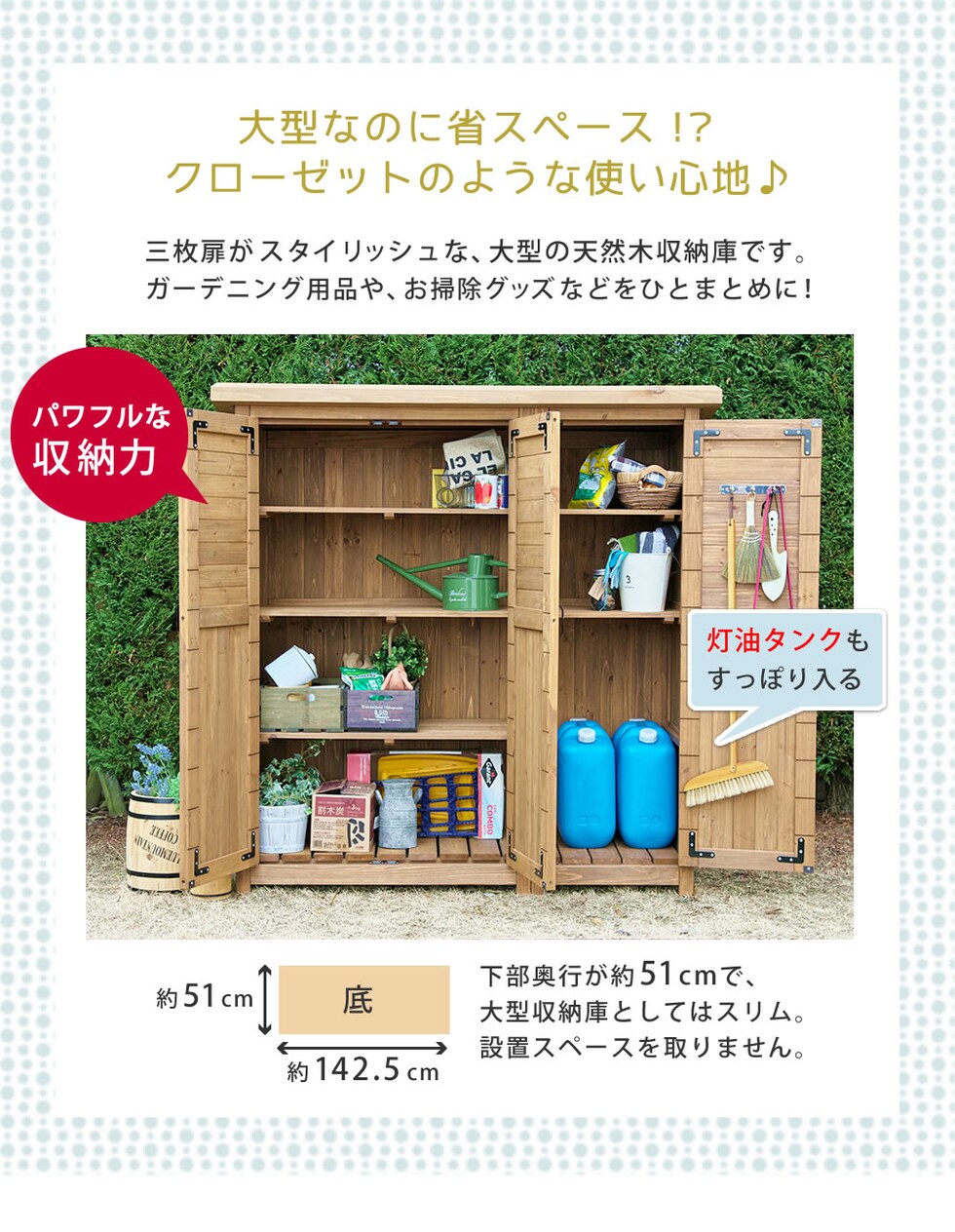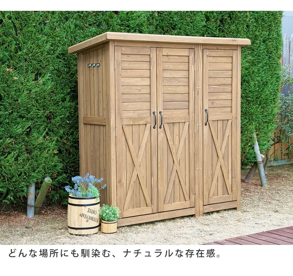 住まいスタイル 木製大型収納庫(三つ扉)【送料無料 物置 倉庫 収納庫 天然木 木製 庭 物入れ おしゃれ 大型 北欧 ナチュラル ガーデニング キャンプ スポーツ 屋外 家具 ライトブラウン ホワイト】