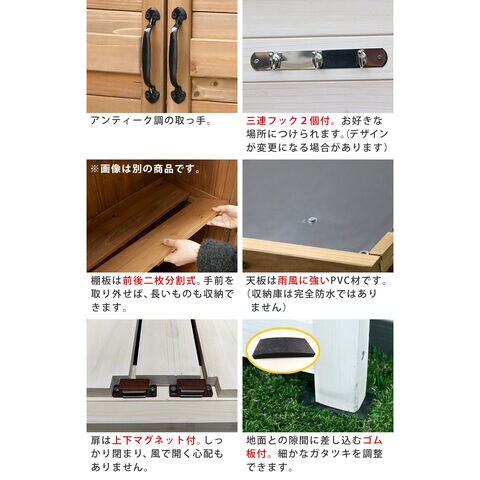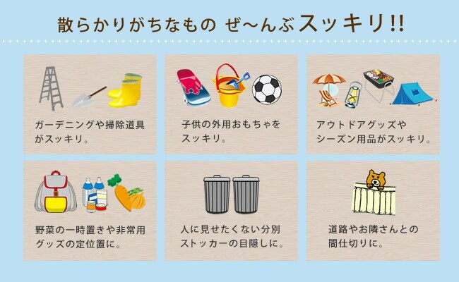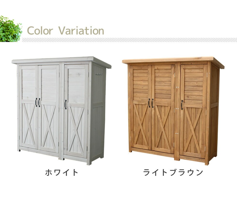 ■三角屋根収納庫(ライトブラウン・ホワイト) ■三角屋根収納庫(ダークグリーン・グレー) ■ベランダ薄型収納庫(高さ160cm) ■ベランダ薄型収納庫(高さ92cm) ■カントリー小屋 大 ■カントリー小屋 薄型 ■木製大型収納庫(三つ扉) ■ギャンブレル屋根収納庫 |