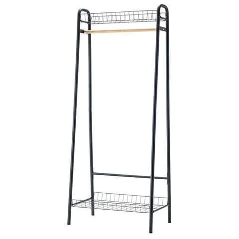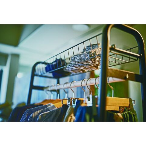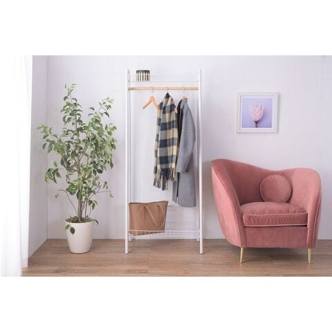 メッシュ棚が上下2段についた、収納性抜群のハンガーラック。ポ