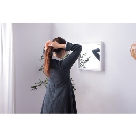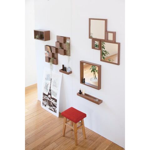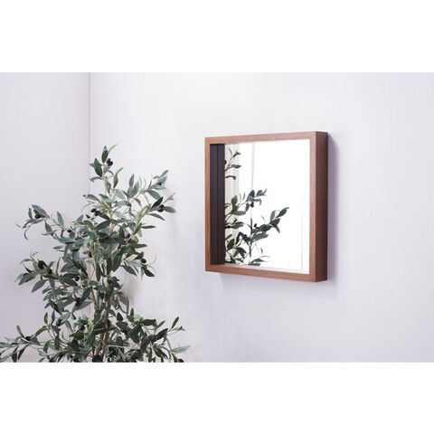 東谷 ミラーL W42×D6×H42 ホワイト/ブラウン 合成樹脂化粧合板 3mm飛散防止ミラー MU-034