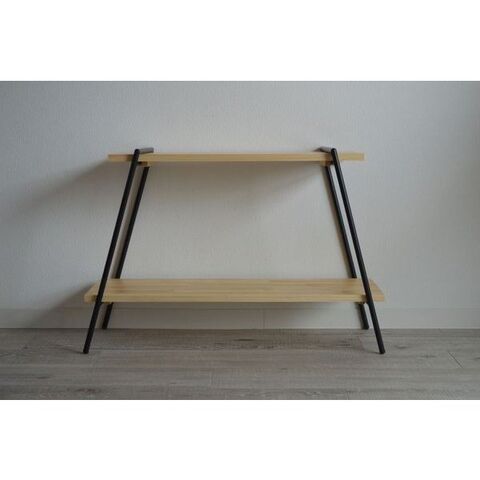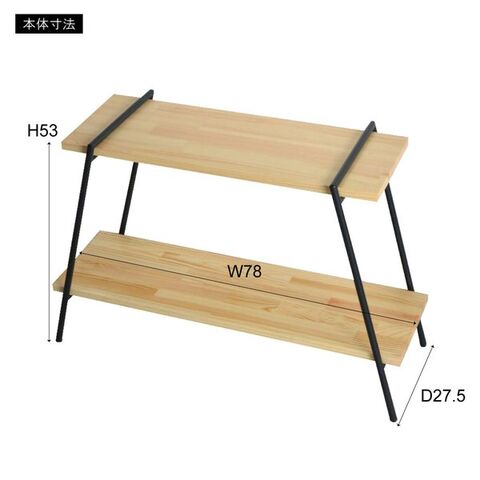 東谷 アイアンレッグラック 2段 W78×D27.5×H53cm ブラック スチール(粉体塗装) 天然木(パイン) ラッカー塗装 組立 国産 日本製 NIT-10BK