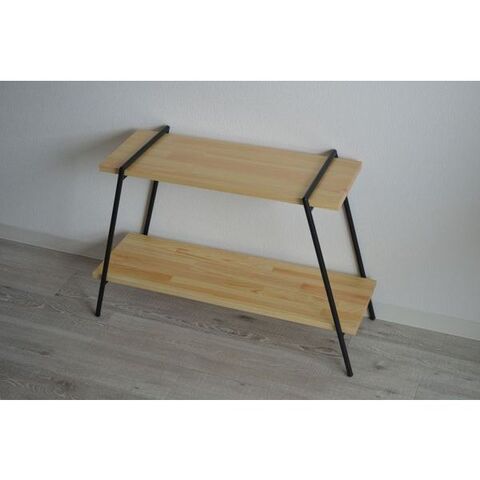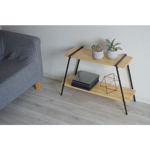 アイアンの脚に木板をセットするだけのシンプルな構造のラック。工具不要で簡単に組み立てることができますので室内だけではなくアウトドアのラックとしても使えます。