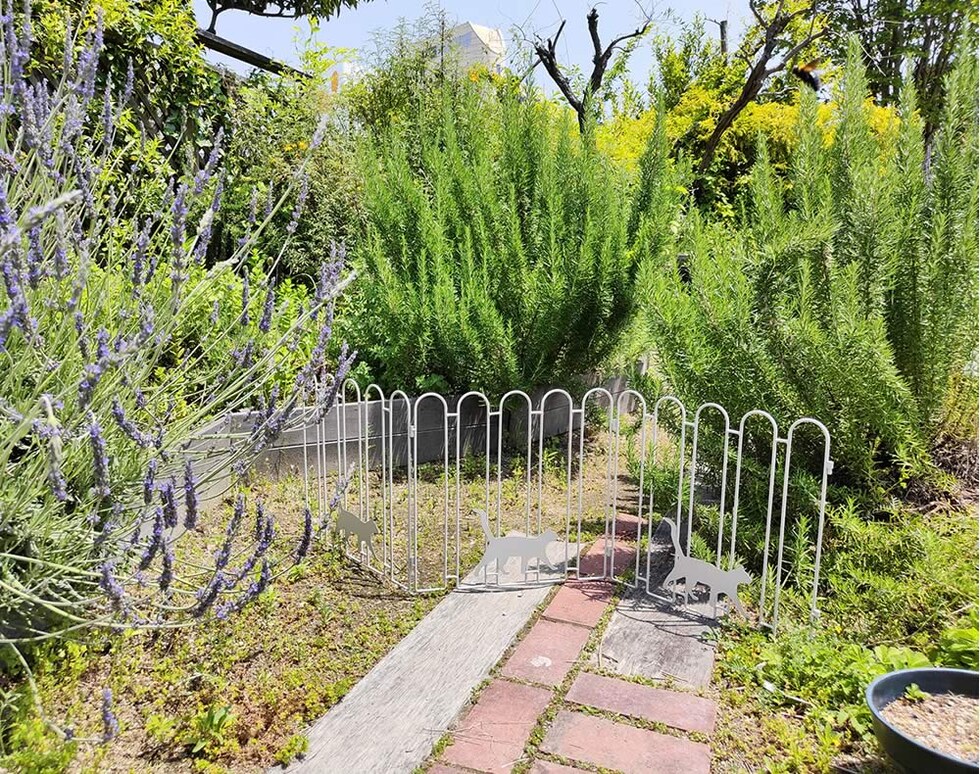置くだけで空間をおしゃれに仕切れる、猫ちゃんデザインのアイアンフェンス。