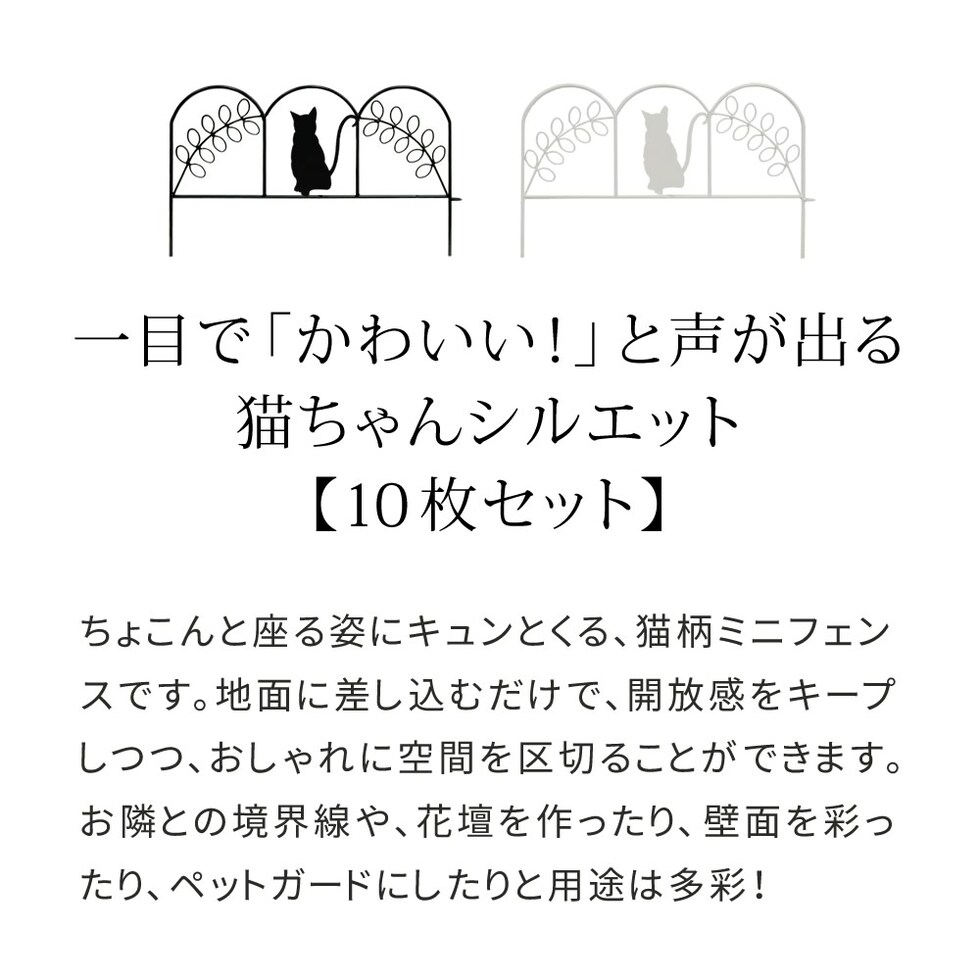 住まいスタイル アイアンフェンス ミニ(猫) 10枚組 ブラック/ホワイト NK7238-10P