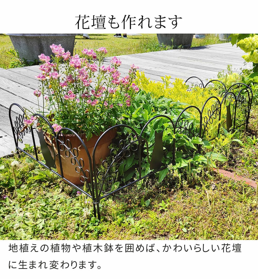 地植えの植物や植木鉢を囲めば、かわいらしい花壇に生まれ変わります。
