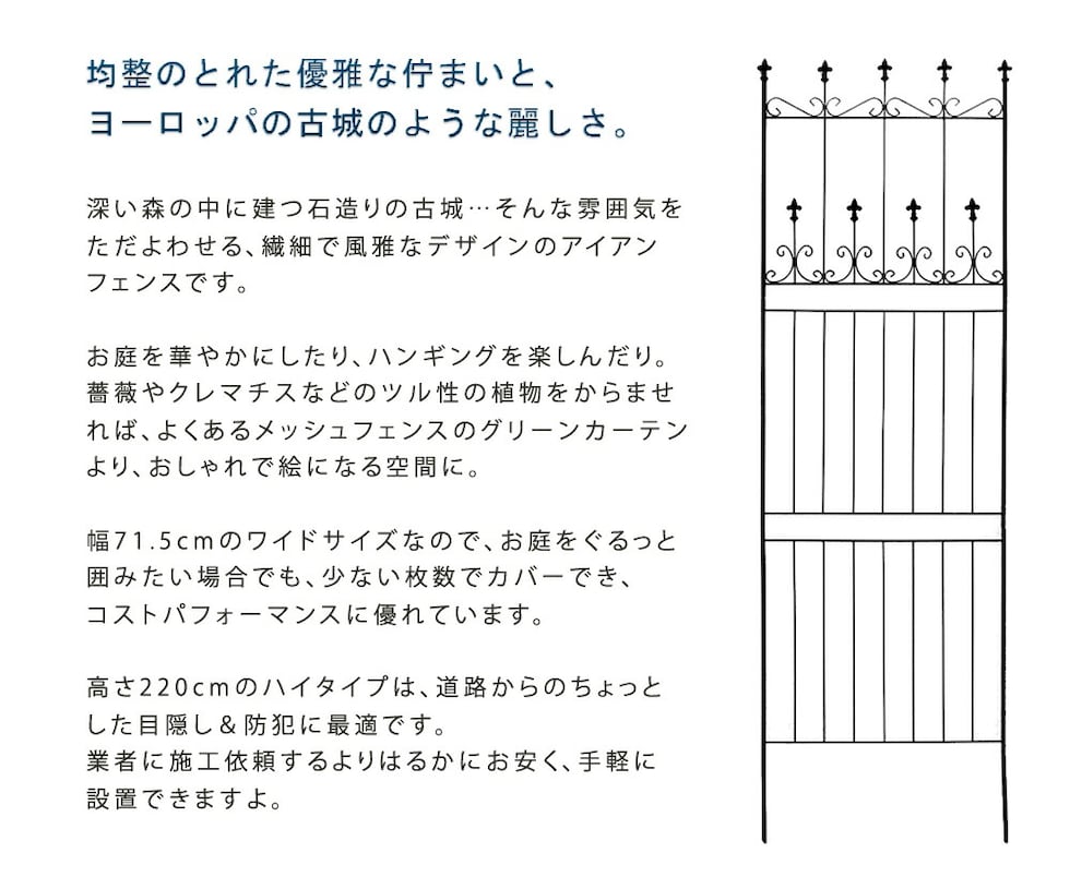 住まいスタイル オールドシャトーフェンス220 ハイタイプ 4枚組<br>【送料無料 フェンス アイアン ガーデンフェンス ガーデニング 枠 柵 仕切り 目隠し 境目 クラシカル アンティーク トレリス ベランダ つる 薔薇 バラ 朝顔 園芸 ラティス つるバラ 庭誘引 屋外 】