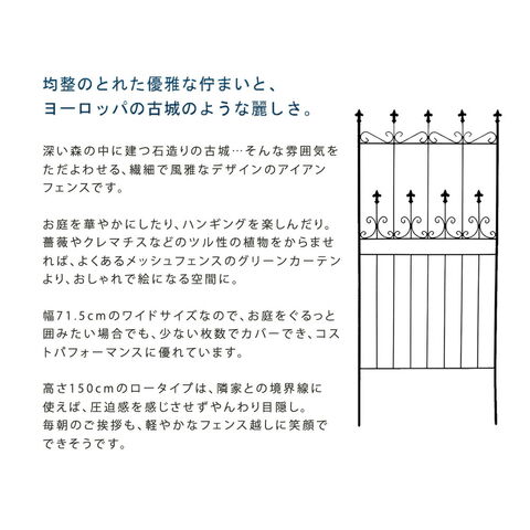 住まいスタイル オールドシャトーフェンス150 ロータイプ 2枚組<br>【送料無料 フェンス アイアン ガーデンフェンス ガーデニング 枠 柵 仕切り 目隠し 境目 クラシカル アンティーク トレリス ベランダ つる 薔薇 バラ 朝顔 園芸 ラティス つるバラ 庭誘引 屋外 】