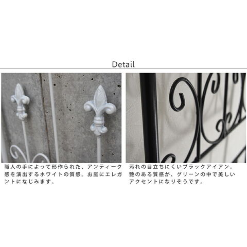 ちょっとさびしい玄関付近や、外壁沿いの味気ない花壇などに、華やかで高級感のあるフェンスをプラスすれば、立体感・躍動感が生まれます。