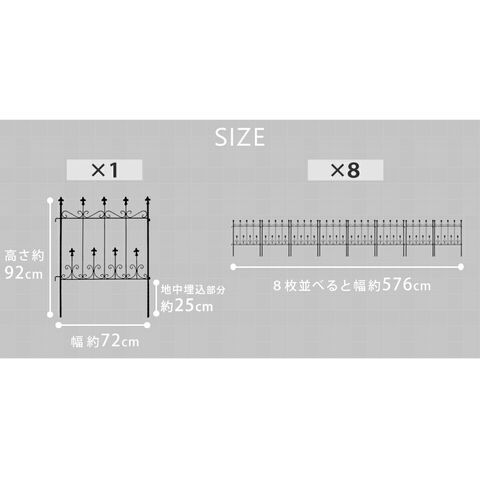 住まいスタイル オールドシャトーフェンス ミニタイプ 8枚組<br>【送料無料 フェンス アイアン ガーデンフェンス ガーデニング 枠 柵 仕切り 目隠し 境目 クラシカル アンティーク トレリス ベランダ つる 薔薇 バラ 朝顔 園芸 ラティス つるバラ 庭誘引 屋外 】