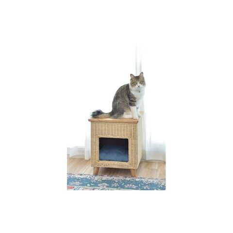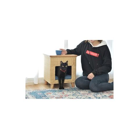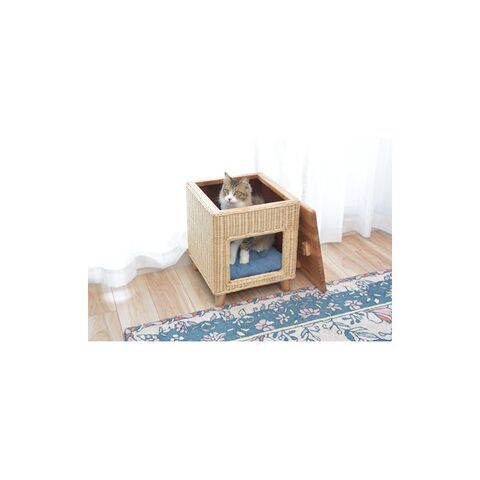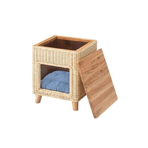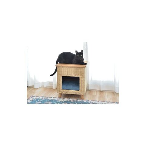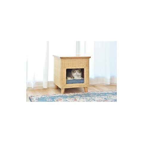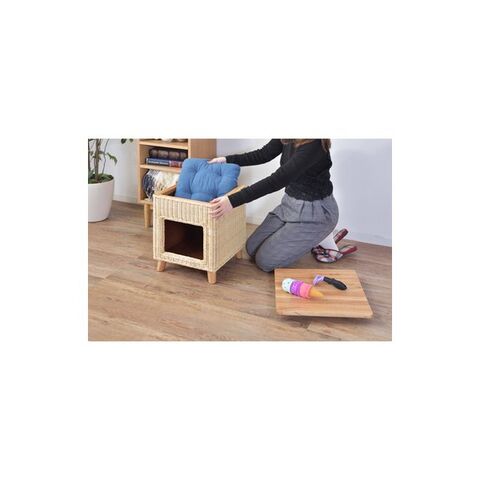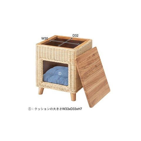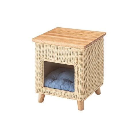 ペットハウススツール スツール テーブル ペットハウス ペットベット 犬 猫 ペット クッション付き 脚付き 天板付き 天然木 木製 ラタン 籐 かわいい 収納 スクエア