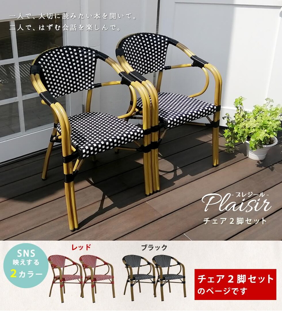 住まいスタイル チェア2脚セット「プレジール」<br>【送料無料 簡単組立 ガーデン PEラタン テラス 庭 レッド ブラック アルミ モダン イングリッシュガーデン ファニチャー 椅子 イス シンプル 欧州 インテリア 家具 ガーデン カフェ】