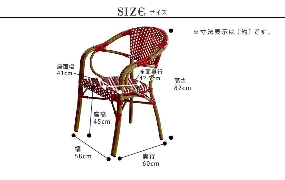 | ■サイズ(約) | 幅 580×奥行 600×高さ 820mm 座高 450mm |