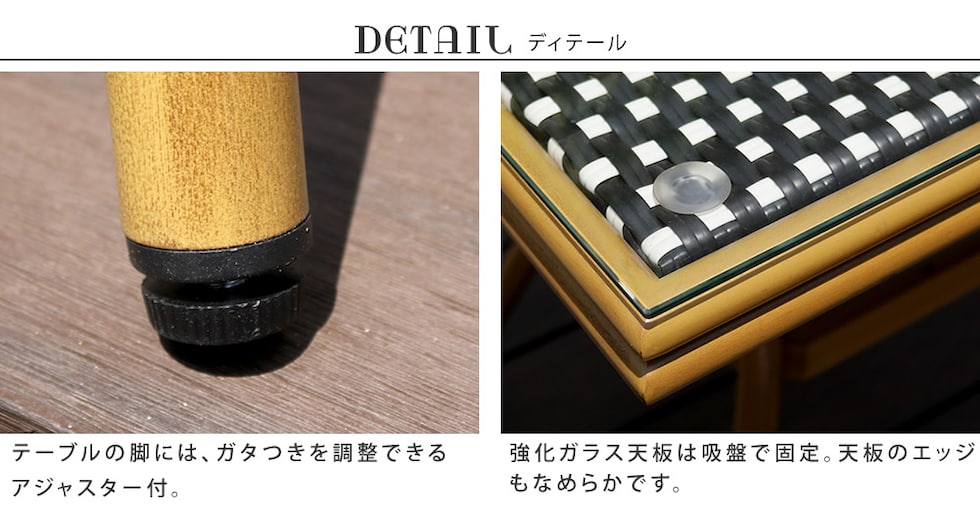 | ■材質 | アルミフレーム・PEラタン・強化ガラス |