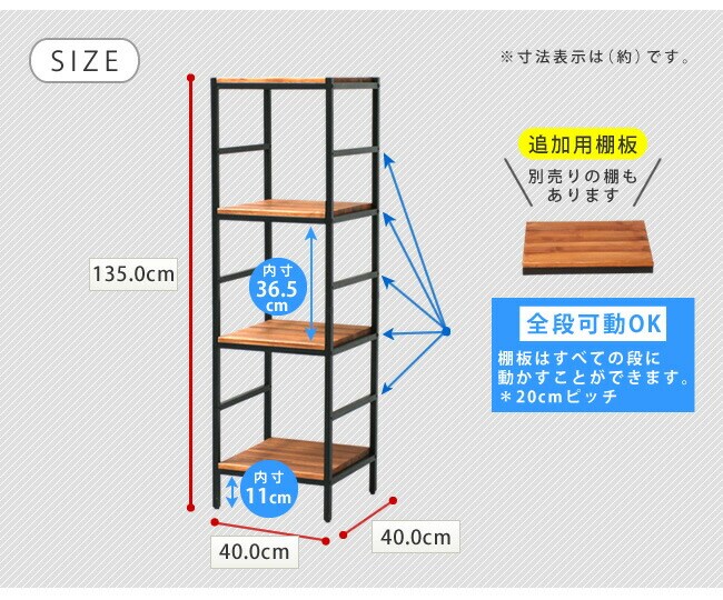 | ■商品名 | ブリックラックシリーズ4段タイプ 40×40×135 |