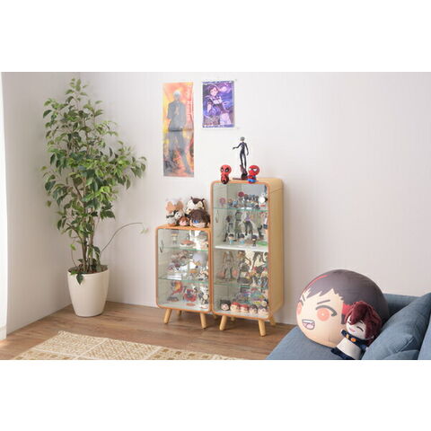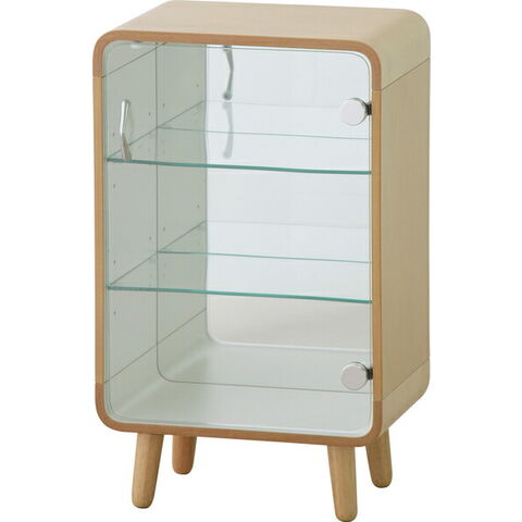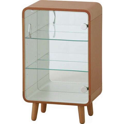 東谷 コレクションシェルフS W36×D26.5×H60 ナチュラル/ブラウン 天然木化粧繊維板 天然木(ラバーウッド) ウレタン塗装 飛散防止ミラー 強化ガラス