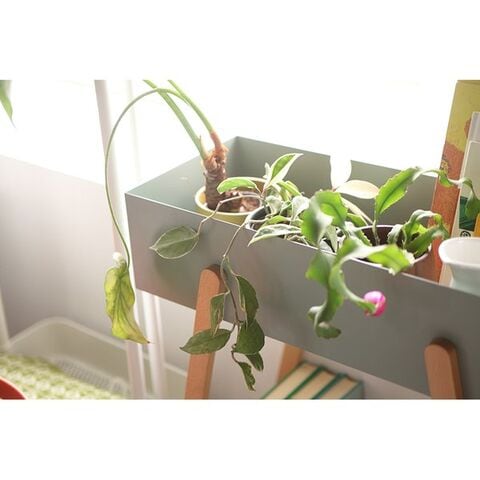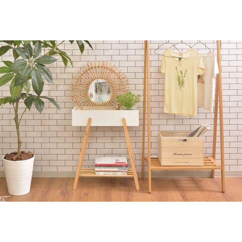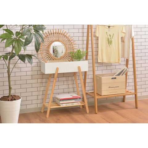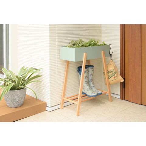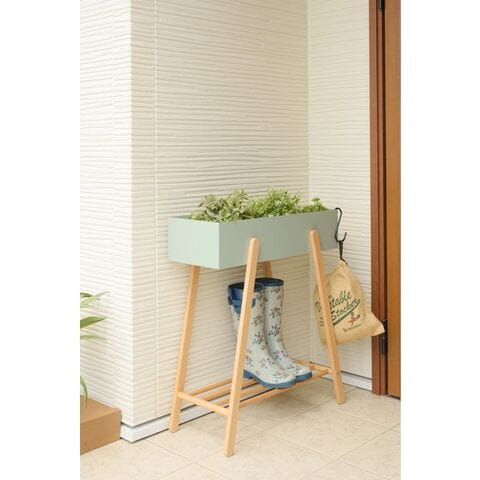 東谷 プランタースタンド W60.5×D28×H72.5 ホワイト/グリーン 天然木(ビーチ) ラッカー塗装 スチール(粉体塗装) PW-51