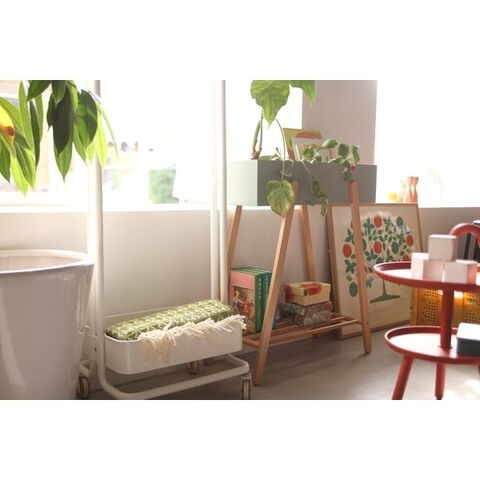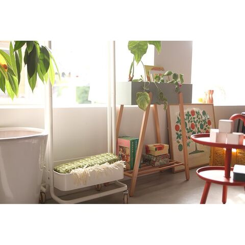 ナチュラルな木と優しい色合いをミックスした、植物をおしゃれに