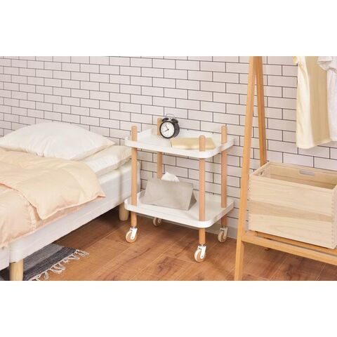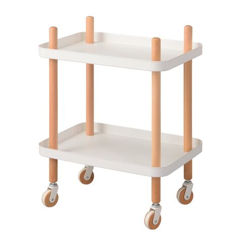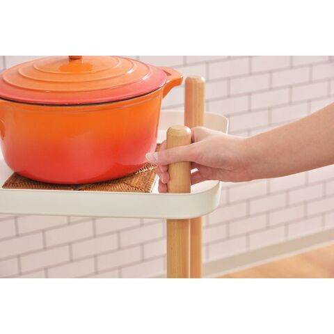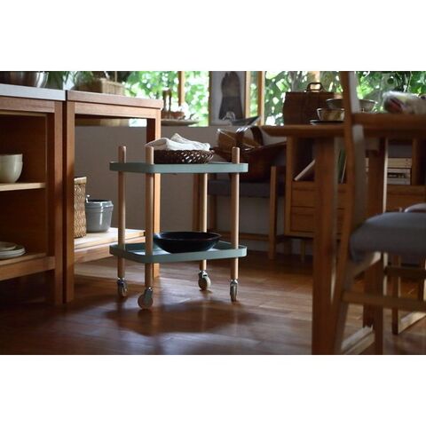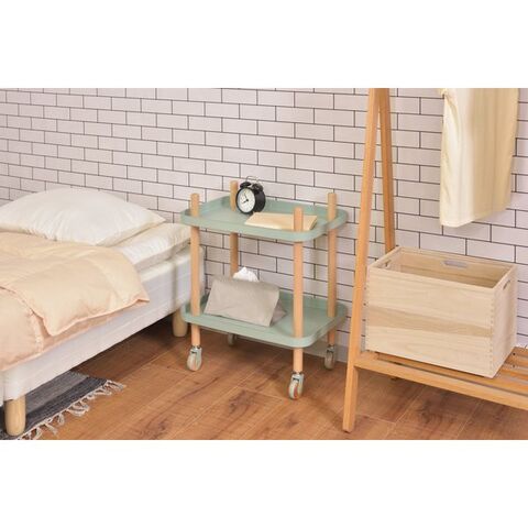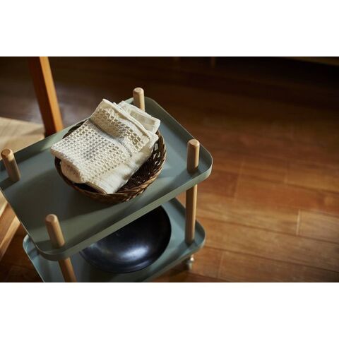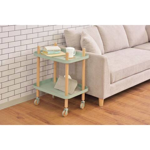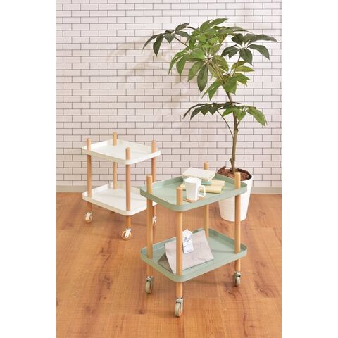 東谷 ワゴン2D W50.5×D35.5×H63.5 ホワイト/グリーン 天然木(ビーチ) ラッカー塗装 スチール(粉体塗装) PW-52