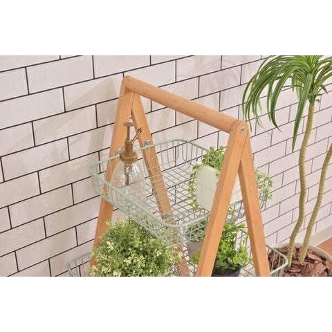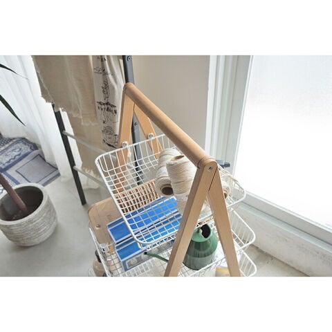東谷 バスケットワゴン W55×D35.5×H86.5 ホワイト/グリーン 天然木(ビーチ) ラッカー塗装 スチール(粉体塗装) PW-54